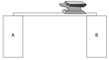 The anvil is closer to Pillar B, so Pillar B bears more weight.