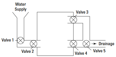 In the following figure, assume the valves are all closed. Which valves need to be open to fill the tank entirely?