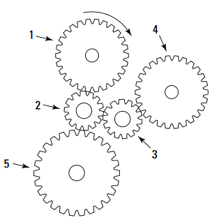 If Gear 1 moves in a clockwise direction, which other gears also turn clockwise?