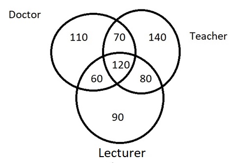 The diagram shows the survey on sample of 400 persons with reference to the number of doctors, teachers and lecturer. 80 represents the group of which of the following persons?